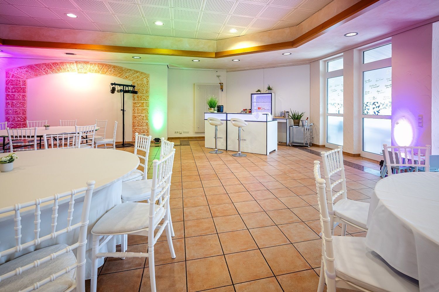 Der große Saal kann je nach Bestuhlung mit Platz für bis zu 180 Personen ausgestattet werden. Somit ist der Saal multifunktional und wandelbar. Kombiniert mit professioneller Licht- und Eventtechnik werden in der Location verschiedene Events durchgeführt.